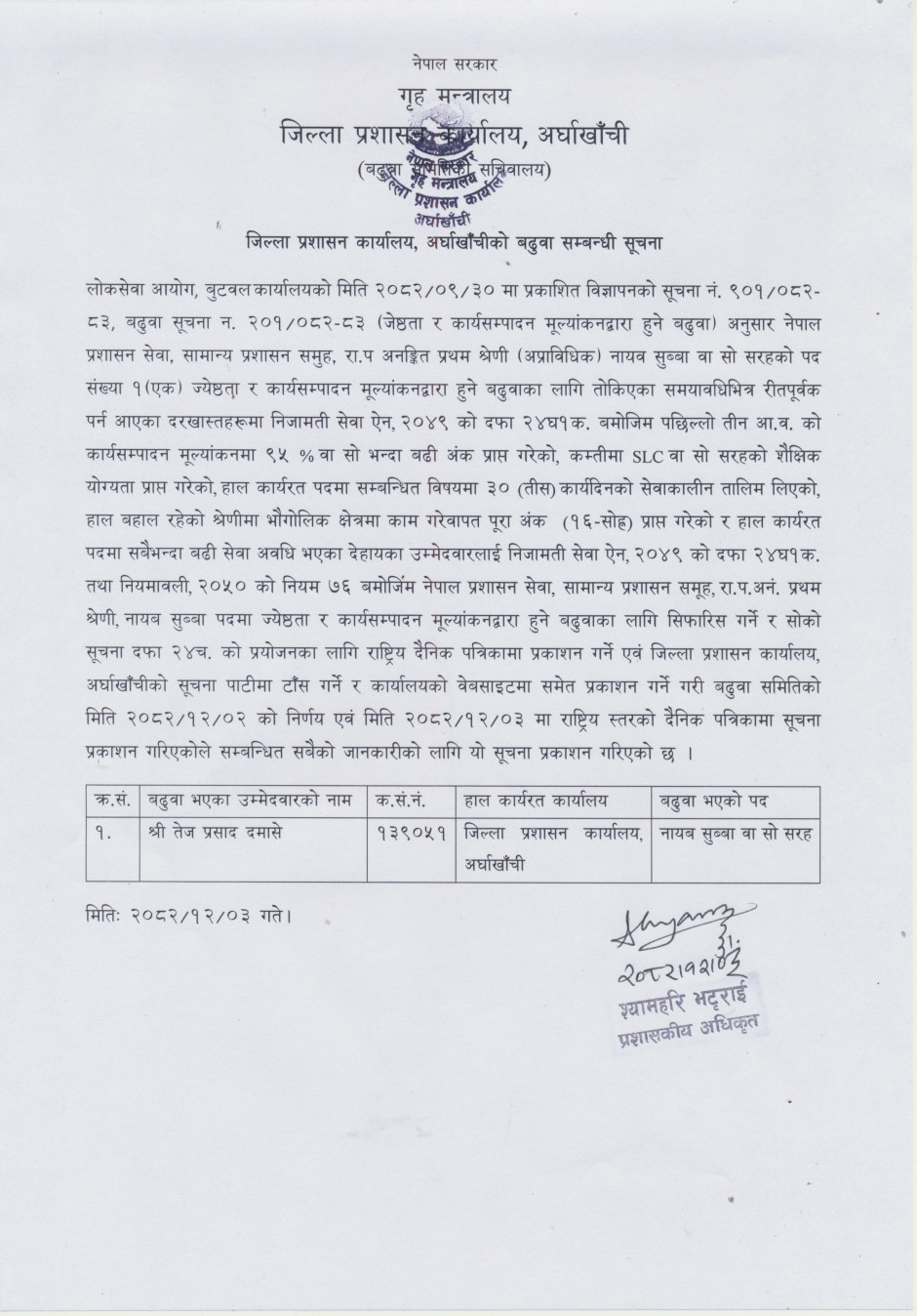जिल्ला प्रशासन कार्यालय, अर्घाखाँची