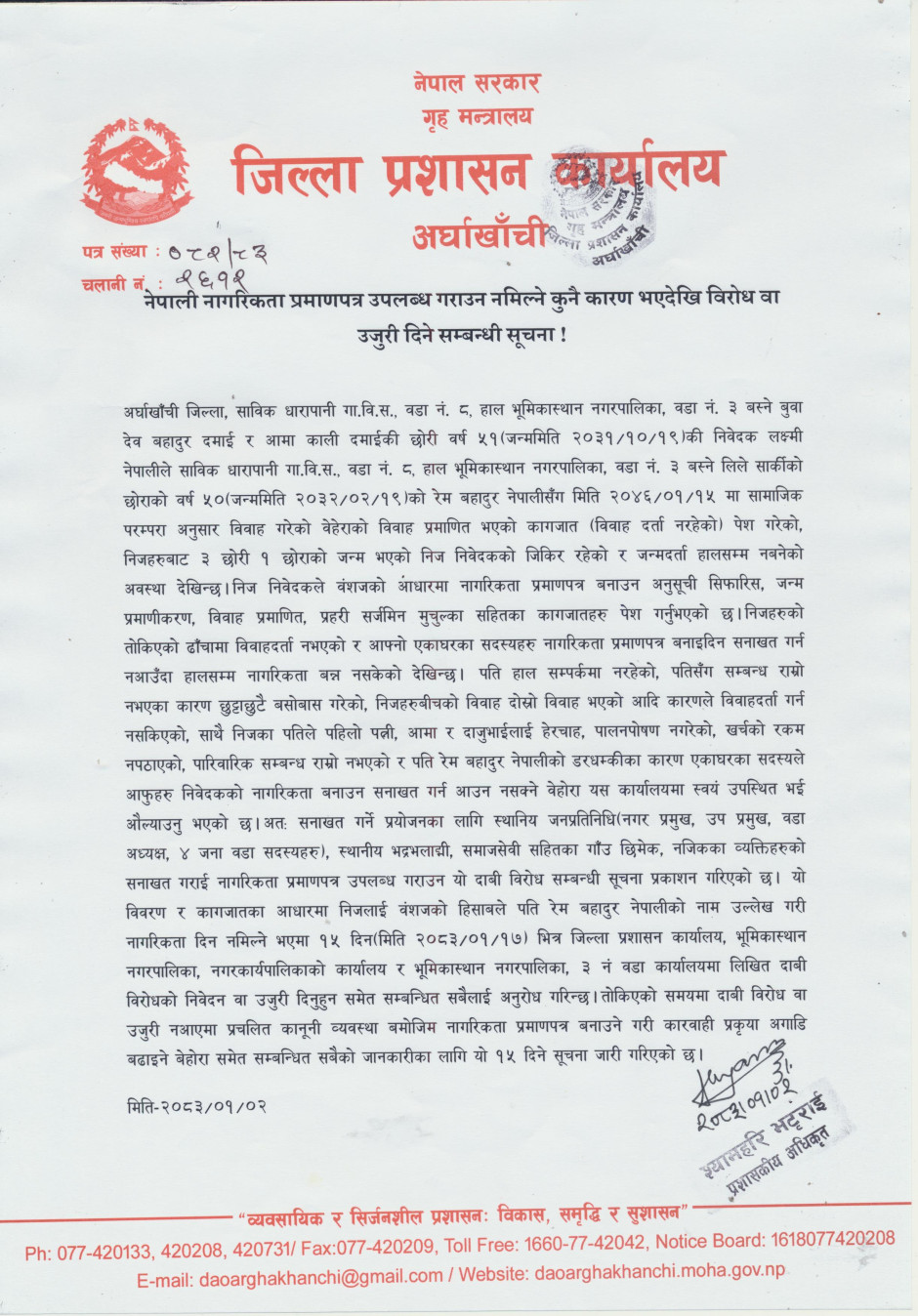 © सर्वाधिकार सुरक्षित जिल्ला प्रशासन कार्यालय, अर्घाखाँची .