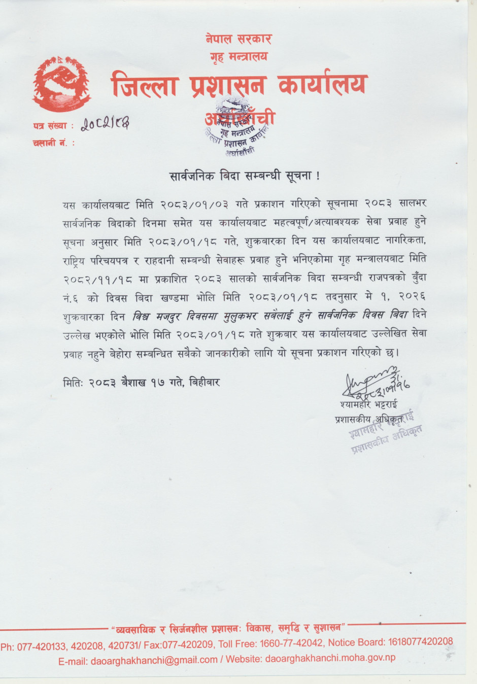 © सर्वाधिकार सुरक्षित जिल्ला प्रशासन कार्यालय, अर्घाखाँची